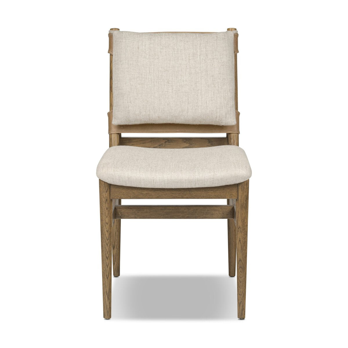 Smoked oak, linen-like fabric and top-grain leather fuse in this material-driven dining chair inspired by midcentury decor. Pillow-format sling seatback features removable cushioning.
